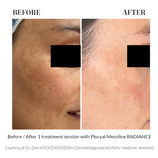 Với khách hàng đã thực hiện nhiều phương pháp điều trị sắc tố như bôi thoa, laser, peel, nhưng kết quả vẫn chưa như mong đợi, thì Pluryal Mesoline Radiance là một giải pháp tối ưu, với công thức tập trung 3 hoạt chất, không chỉ hỗ trợ giảm sắc tố mạnh mẽ, mà còn mang lại làn da sáng đều màu, và khỏe khoắn hơn.